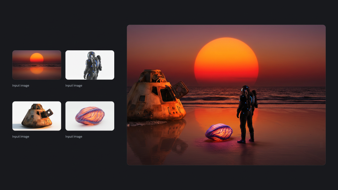 Prompt: Combine these images into one appropriately arranged cinematic image in 16:9 format